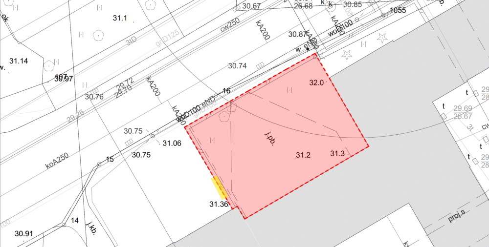Czy zapis o konieczności zachowania oryginalnego przebiegu, struktury i kolorystyki betonowego obramienia zieleńca dotyczy tylko obramienia granicy działki, czy także wewnętrznych obramień zaznaczonych przerywaną linią? Czy możliwe jest wykonanie w obramieniu dodatkowej przerwy (ok. 1,8 m) na nową ścieżkę?